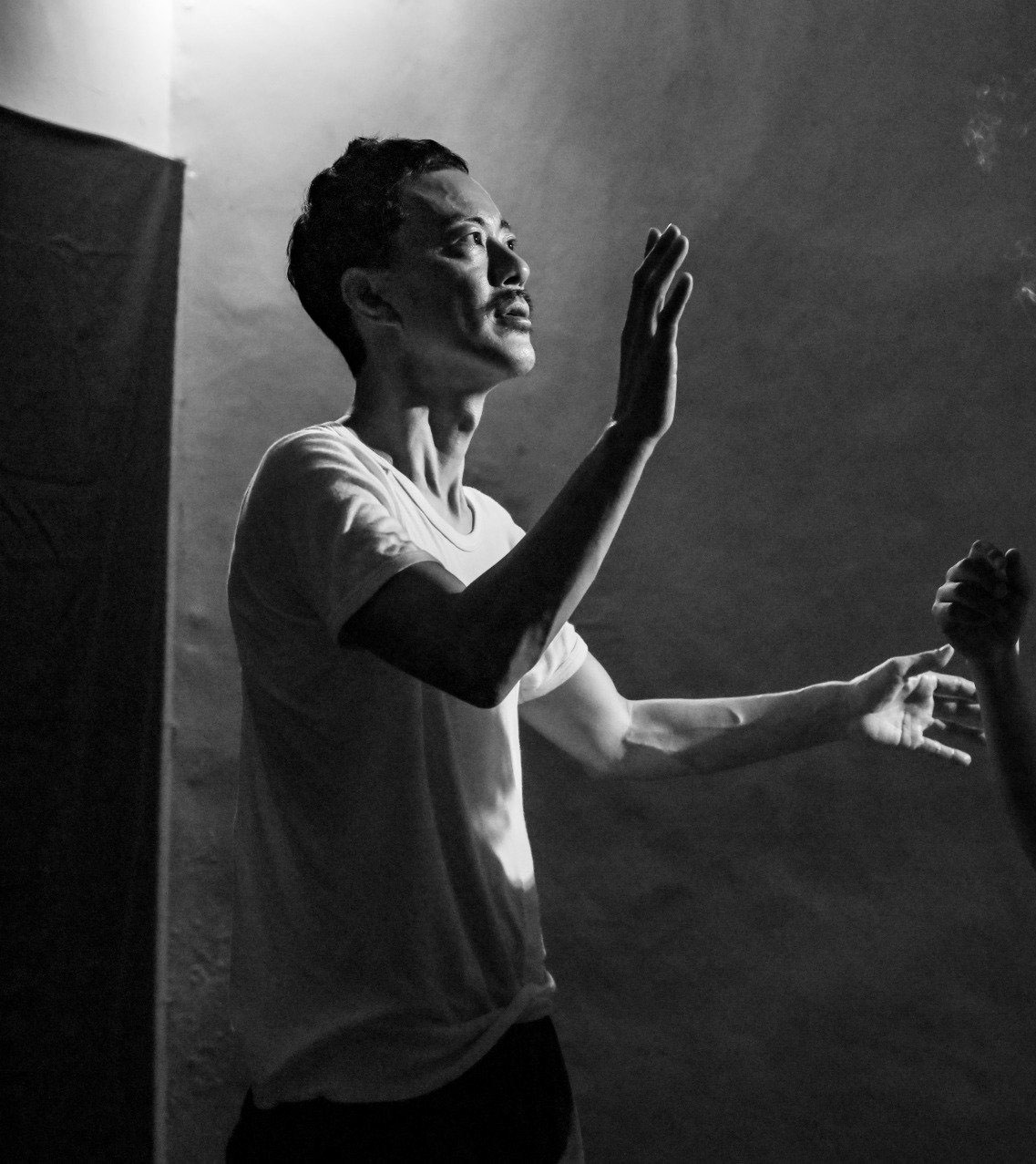 Defining boundaries for Suzuki Training is a risky business because the caveats might overwhelm the pronouncements. However, in teaching and directing I have come to desire a use of the first principles of the training within what I see as the usual presentational form of address that leaves actors rarely seeing or touching each other. So, at the beginning of 2023, I established improvisations where actors turned inwards and where touching was an objective. We brought the energies produced by the attention and resistance work in Suzuki Training to improvisations of tactile push and pull. Initially with two performers, I asked ‘Orange’ to make an offer, and ‘Lemon’ to respond. The offer: Orange rises from the floor on an impulse extending a hand for Lemon. The response: Lemon recognises the aesthetic of Orange’s offer and responds by touching Orange's hand. There are other possibilities—broadly, the quality of the exchange could be described as an offer of affection or offence, the response one of attraction or repulsion.