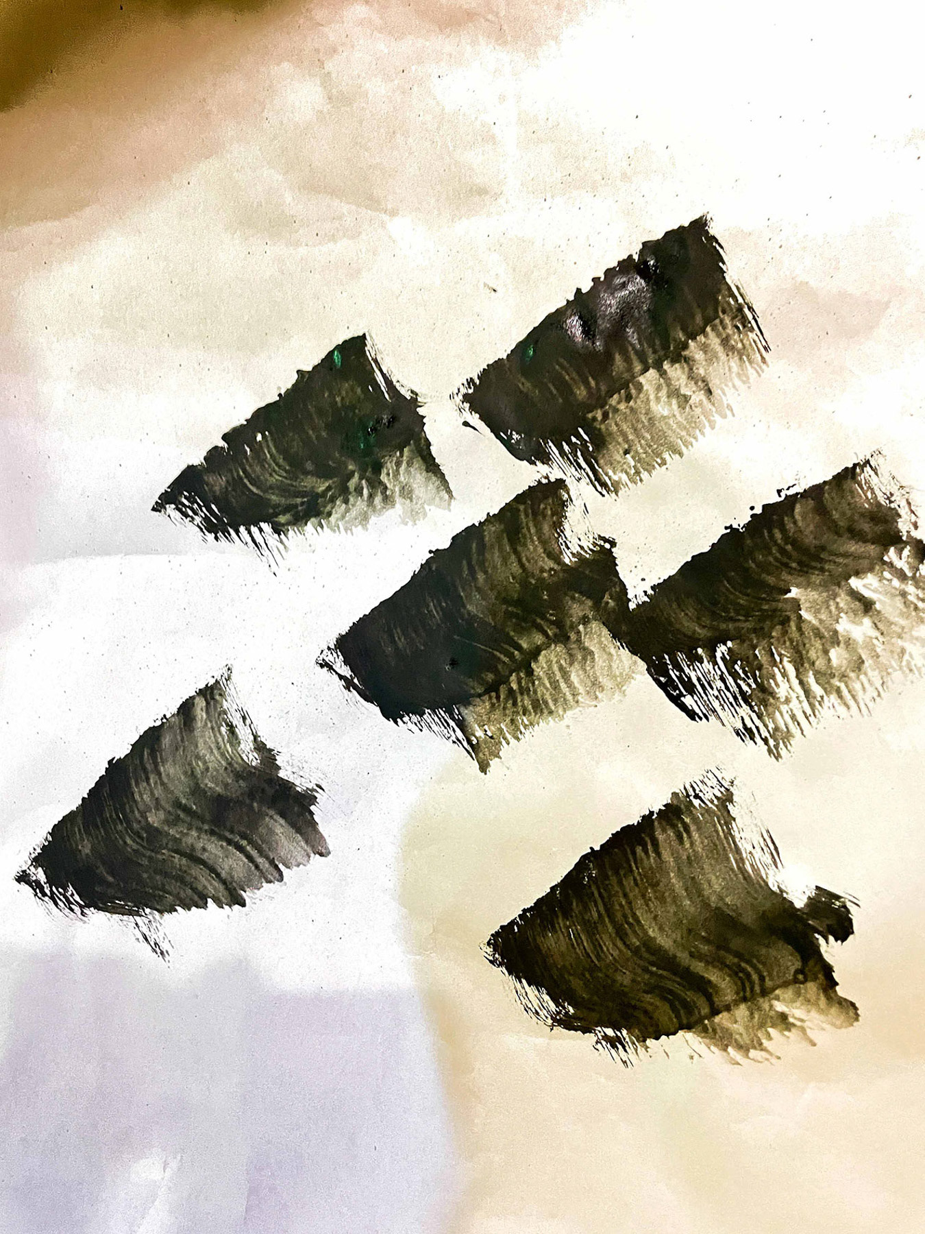 Inspired by Annette Iggulden's study of renaissance nuns who communicated through silence with illuminating manuscripts and Matthew Crosby's study of Lev Vygotsky's notion that the inner thought is completed in its expression, the women of the Underworld, Yuri | Eurydice | Alana Hoggart, Psyche | Ru, Joshinder Kaur Chaggar, Shei | Charon | Tessa Mari Luminati, Pers | Persephone | Lorna McLeod made these watercolor on paper glyphs (2021).